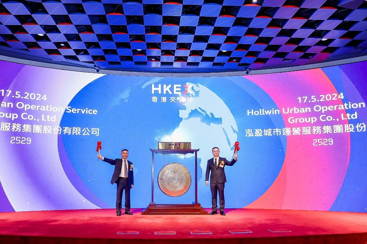 2024年5月17日,泓盈城市运营服务集团股份有限公司(股票名称:泓盈城市服务,股票代码:2529.HK)在香港联合交易所主板挂牌上市。长沙市人民政府党组成员、副市长周志凯,长沙市人民政府国有资产监督管理委员会党委书记、主任黄阳,长沙市人民政府金融工作办公室党组书记、主任邱兵东,长沙城市发展集团有限公司党委书记、董事长邹春林出席上市敲锣仪式。